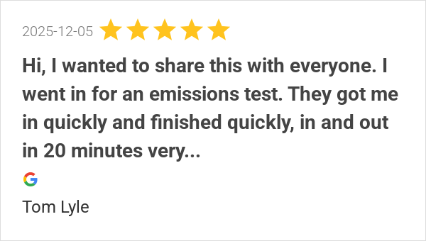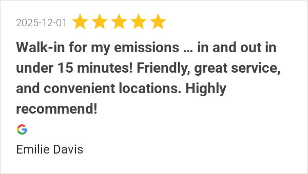 Walk-in for my emissions … in and out in under 15 minutes! F...