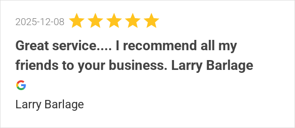 Great service.... I recommend all my friends to your busines...