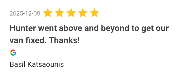 Hunter went above and beyond to get our van fixed. Thanks!