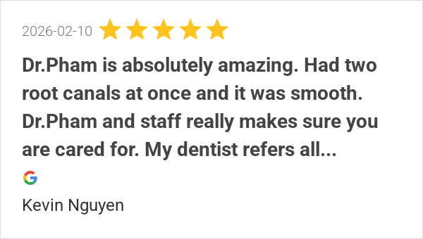 Dr.Pham is absolutely amazing. Had two root canals at once a...