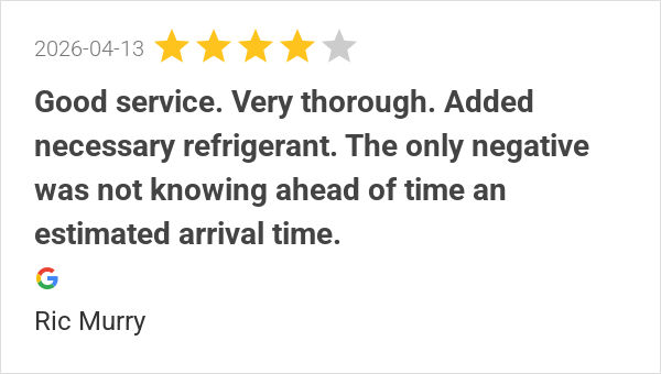 Good service. Very thorough. Added necessary refrigerant. Th...