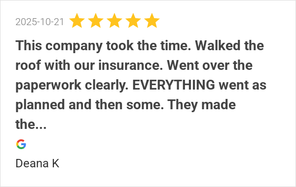 This company took the time. Walked the roof with our insuran...