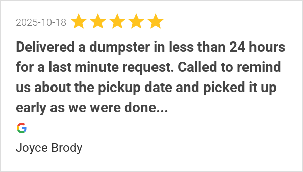 Prompt deliver, prompt pickup, great price. Can’t ask for be...