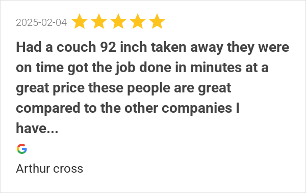 Prompt, Respectful and Quick.I called to get some sofas remo...