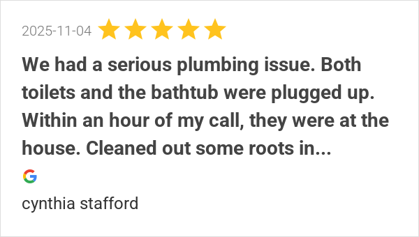 We had a serious plumbing issue. Both toilets and the bathtu...