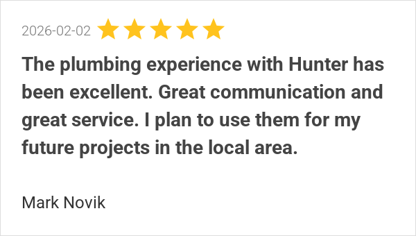 The plumbing experience with Hunter has been excellent. Grea...
