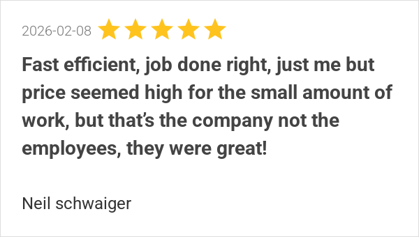 Fast efficient, job done right, just me but price seemed hig...