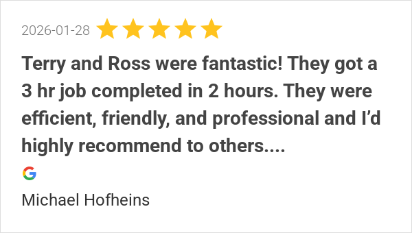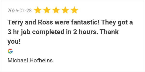 Terry and Ross were fantastic! They got a 3 hr job completed...