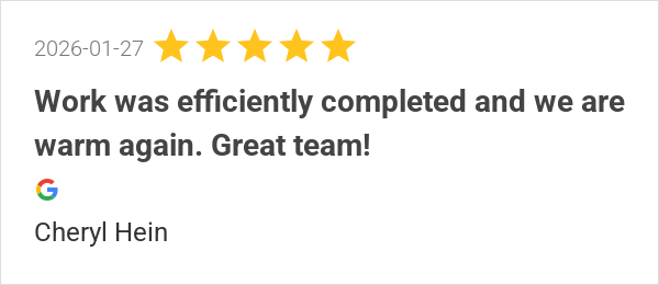 Work was efficiently completed and we are warm again. Great ...