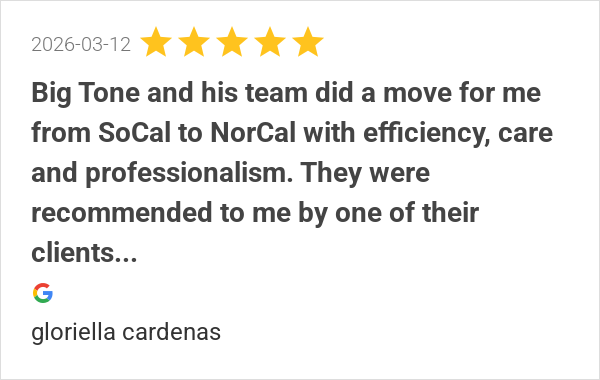 Big Tone and his team did a move for me from SoCal to NorCal...