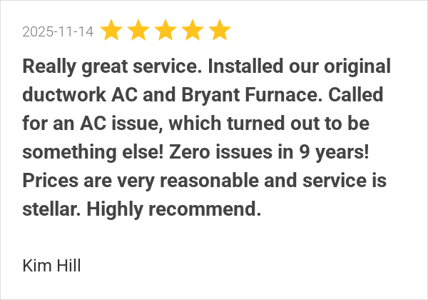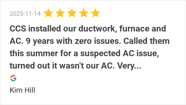 CCS installed our ductwork, furnace and AC. 9 years with zer...