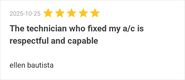 The technician who fixed my a/c is respectful and capable