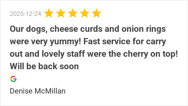 Our dogs, cheese curds and onion rings were very yummy! Fast...