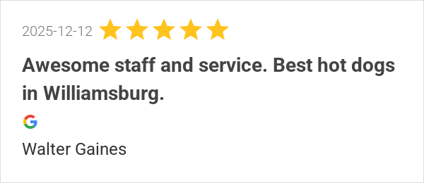 Awesome staff and service. Best hot dogs in Williamsburg.