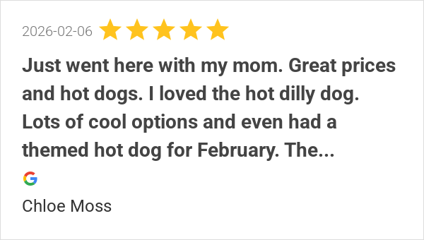 Great prices and hot dogs. I loved the hot dilly dog. Lots o...