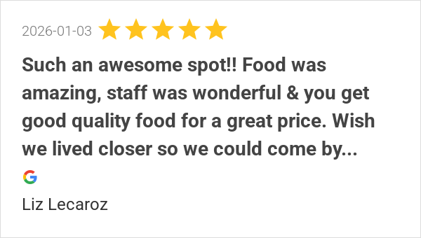 Such an awesome spot!! Food was amazing, staff was wonderful...