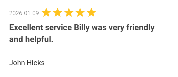Excellent service Billy was very friendly and helpful.