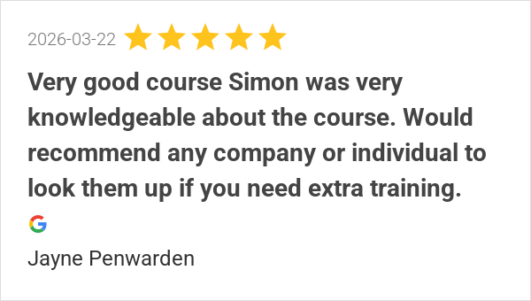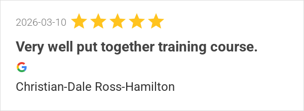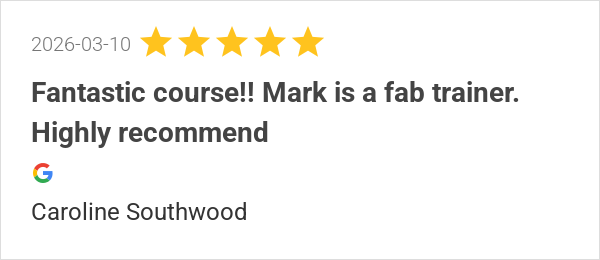 Fantastic course!! Mark is a fab trainer. Highly recommend