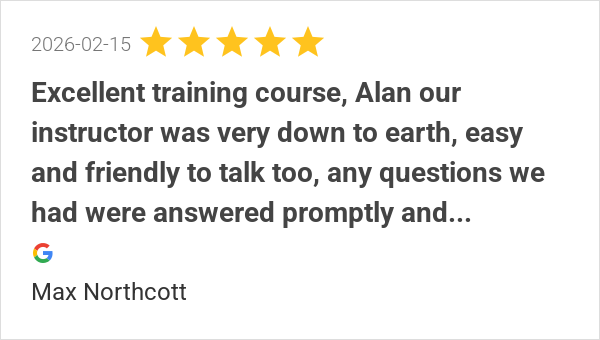 Excellent training course, Alan our instructor was very down...