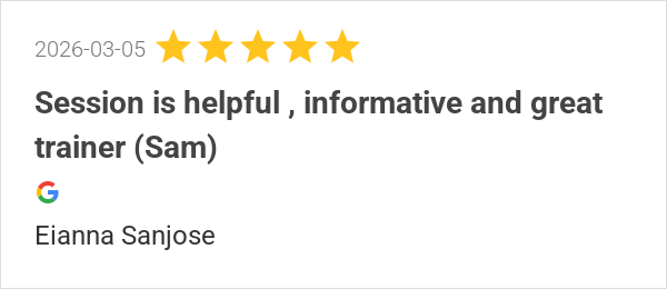 Session is helpful , informative and great trainer (Sam)