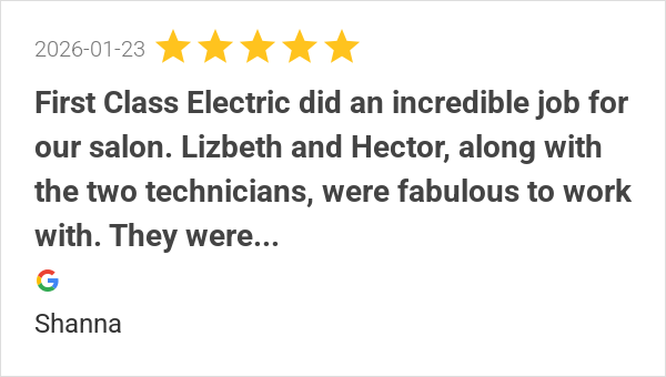 First Class Electric did an incredible job for our salon. Li...