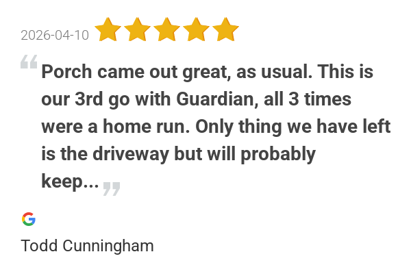 Porch came out great, as usual. This is our 3rd go with Guar...