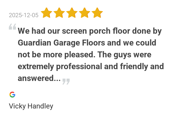 We had our screen porch floor done by Guardian Garage Floors...
