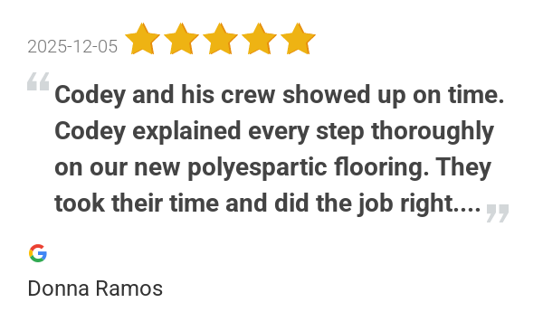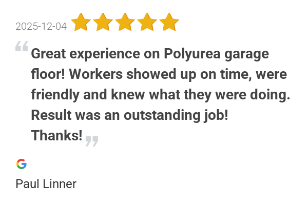 Great experience on Polyurea garage floor! Workers showed up...