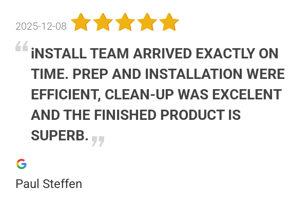 PREP AND INSTALLATION WERE EFFICIENT, CLEAN-UP WAS EXCELENT ...