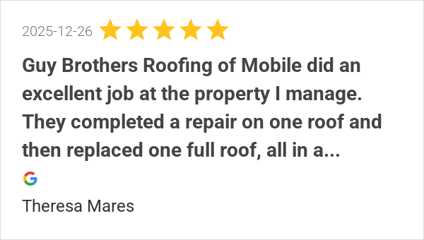 Guy Brothers Roofing of Mobile did an excellent job at the p...