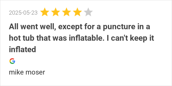 All went well, except for a puncture in a hot tub that was i...
