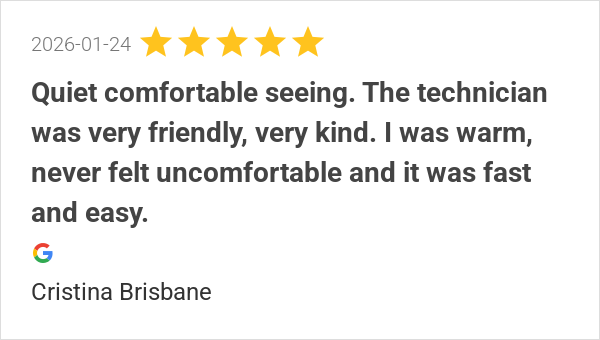 Quiet comfortable seeing. The technician was very friendly, ...