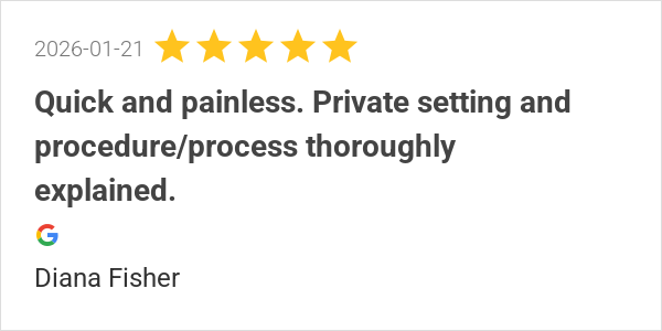 Quick and painless. Private setting and procedure/process th...