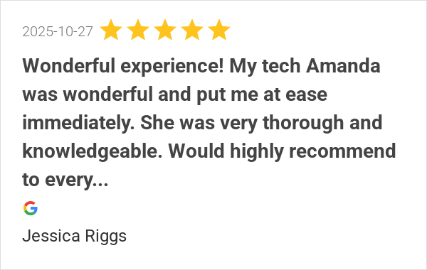 Wonderful experience! My tech Amanda was wonderful and put m...