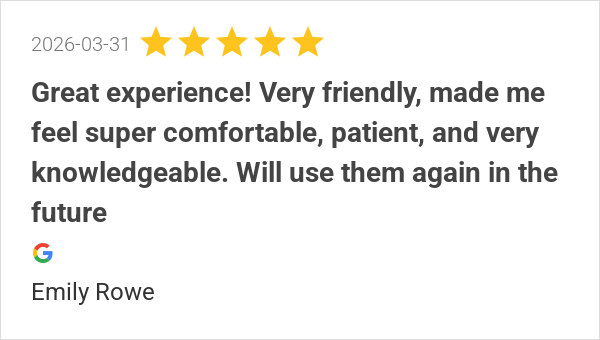 Great experience! Very friendly, made me feel super comforta...