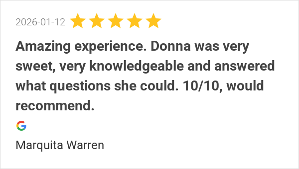 Amazing experience. Donna was very sweet, very knowledgeable...