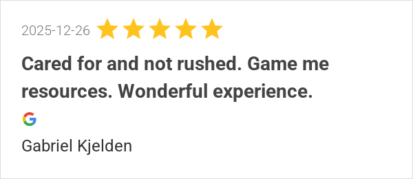 Cared for and not rushed. Game me resources. Wonderful exper...