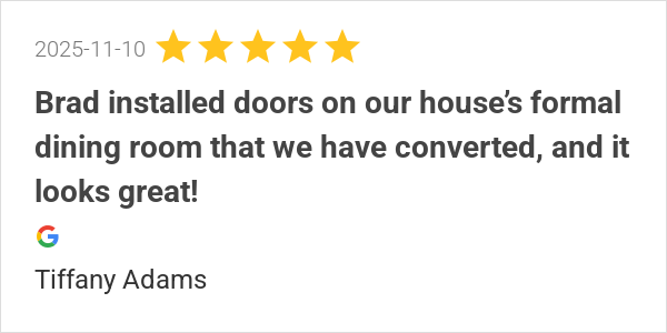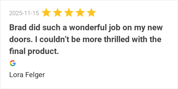Brad did such a wonderful job on my new doors. I couldn’t be...