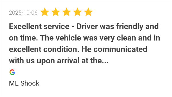 Excellent service - Driver was friendly and on time. The veh...