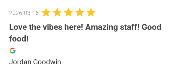 Love the vibes here! Amazing staff! Good food!