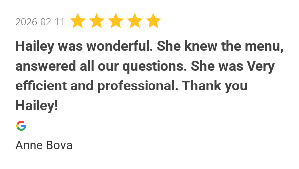 She knew the menu, answered all our questions. She was Very ...