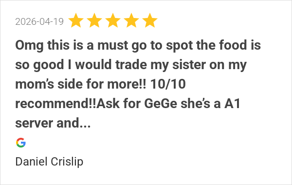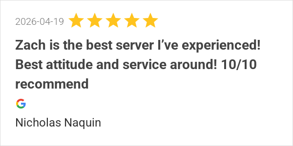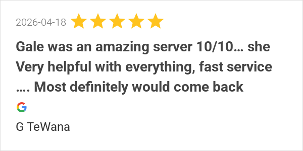 Gale was an amazing server 10/10… she Very helpful with eve...