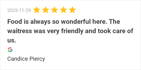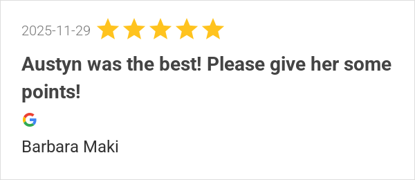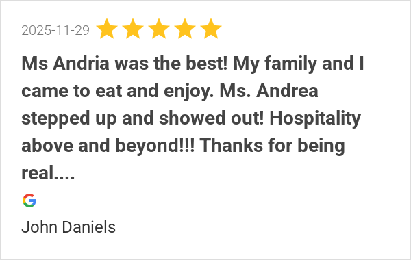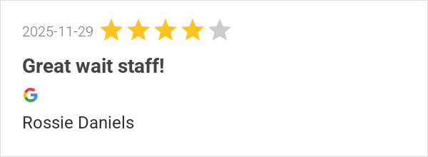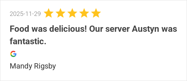 EXCELLENT SERVICE AND GREAT FOOD!!! AUSTYN WAS AN AWESOME SE...