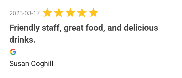 Friendly staff, great food, and delicious drinks.