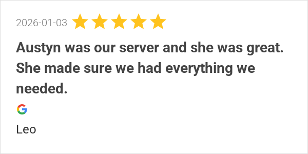 Food was great and so was ms. Brandy!!