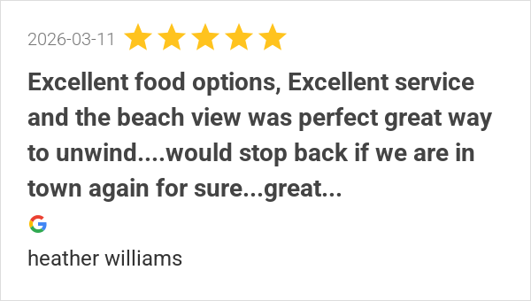 Excellent food options, Excellent service and the beach view...