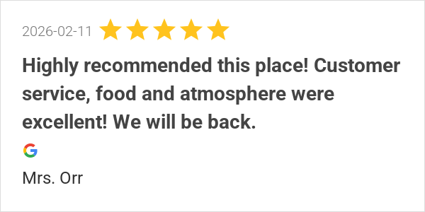 Highly recommended this place! Customer service, food and at...