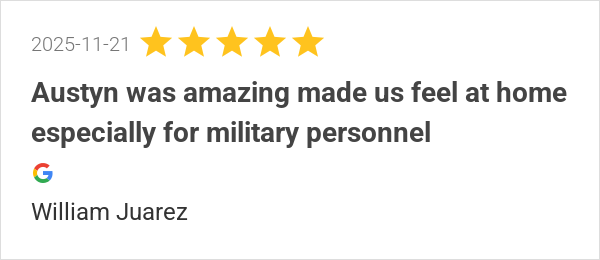 Austyn was amazing made us feel at home especially for milit...
