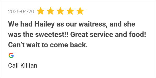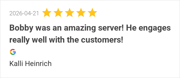 Great time with Bobby as our server! Great food as always, g...