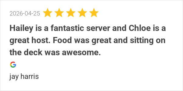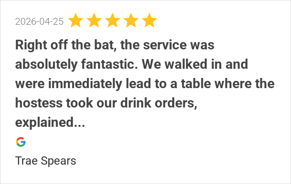 Great food and even better service! Fried green maters was h...
